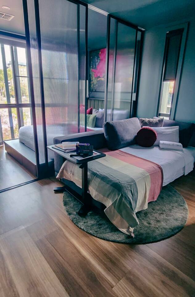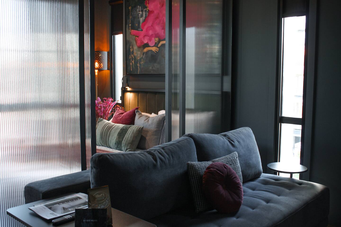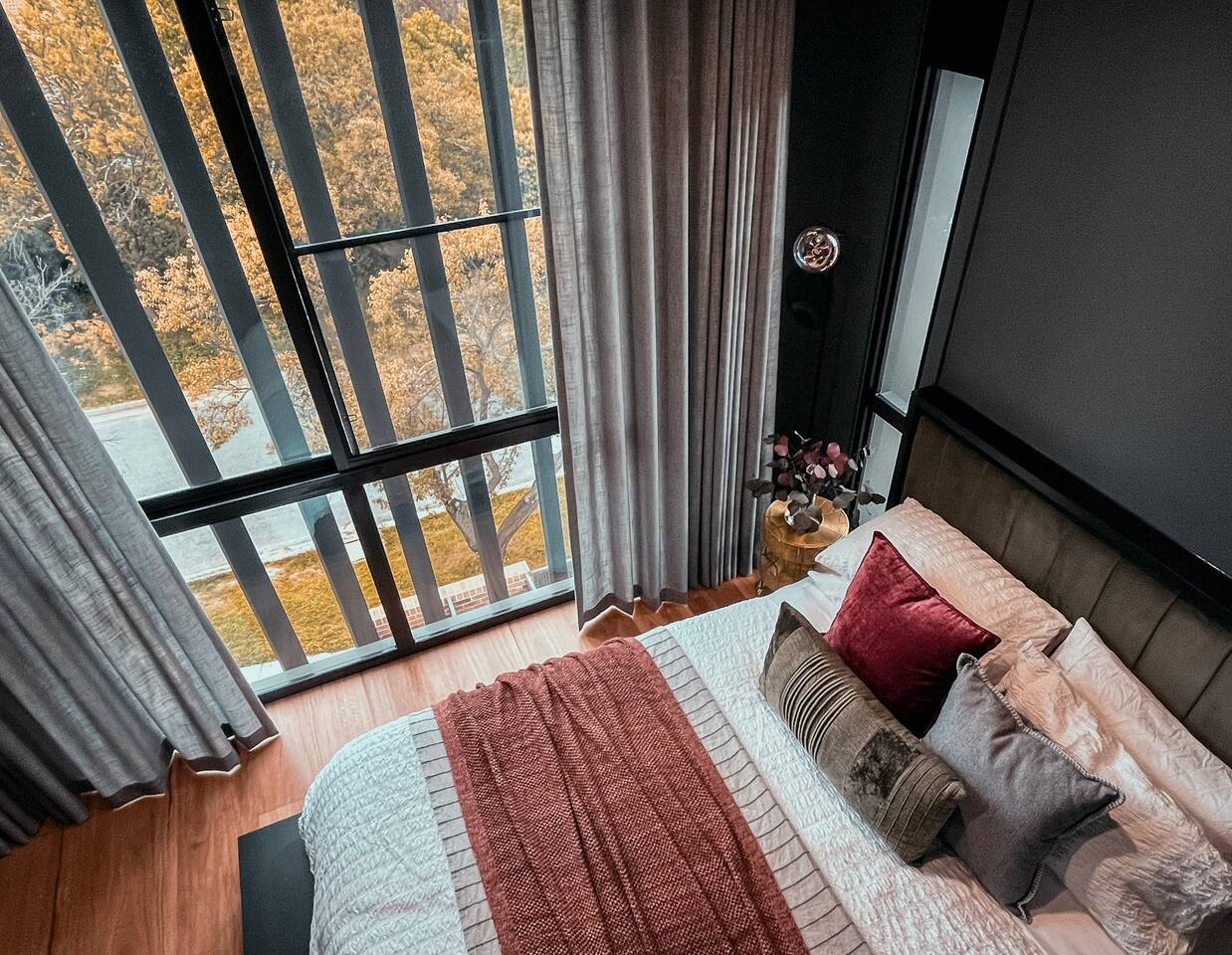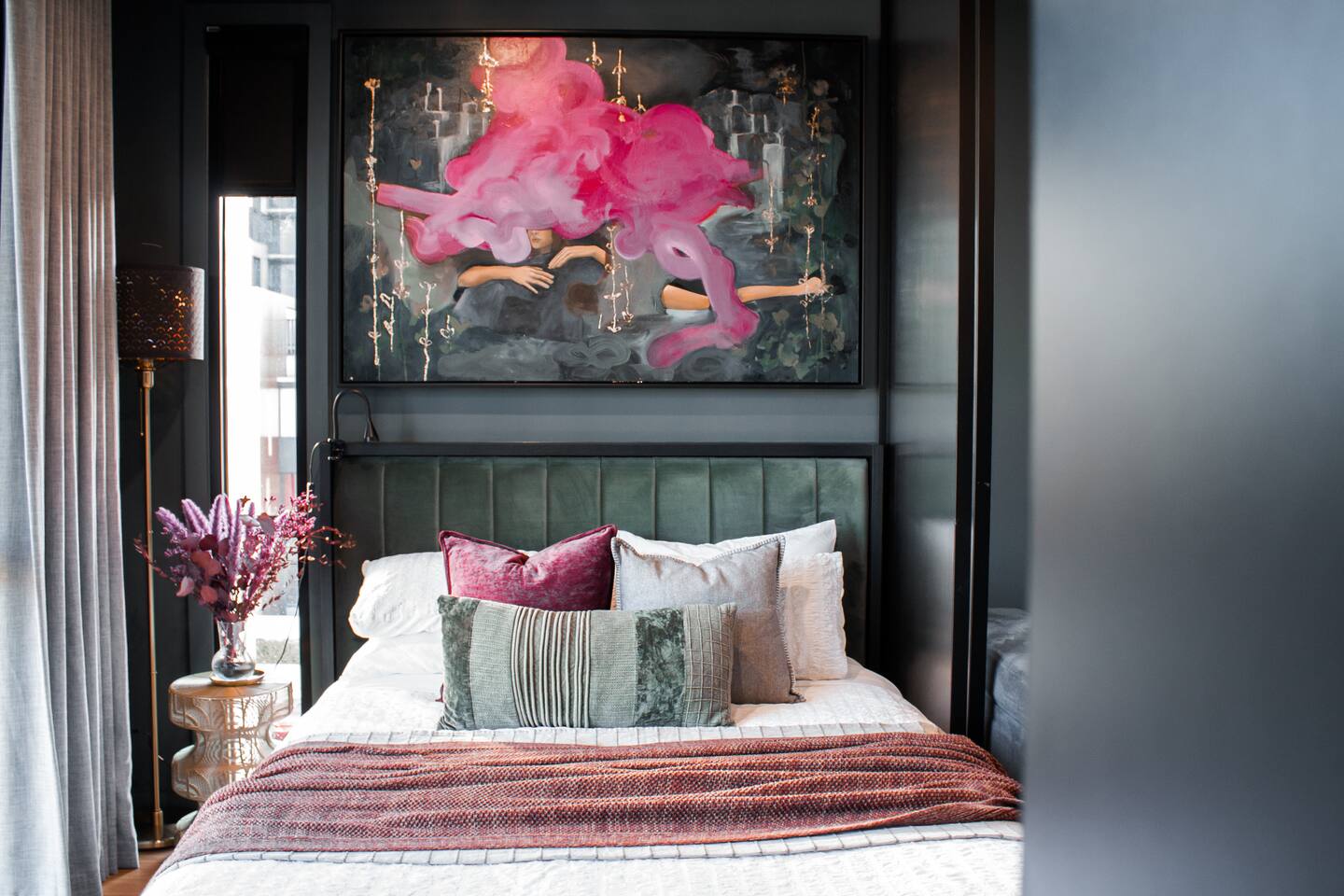 Soft muted tones, designer wallpaper, and custom magenta artwork fuse to engage your senses in the 'Lagoon' micro-apartment. Purpose made for comfort and relaxation, this tiny home-inspired retreat boasts a fully equipped mini kitchen, bespoke joinery, and luxury finishes. Enjoy treeline views and curated design that transport you to a 'lagoon' state of mind. With a playful boutique hotel vibe and all the comforts of home, 'Lagoon' invites you to effortlessly embrace holiday or staycation mode.