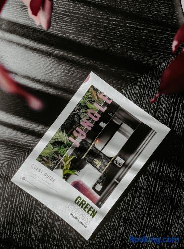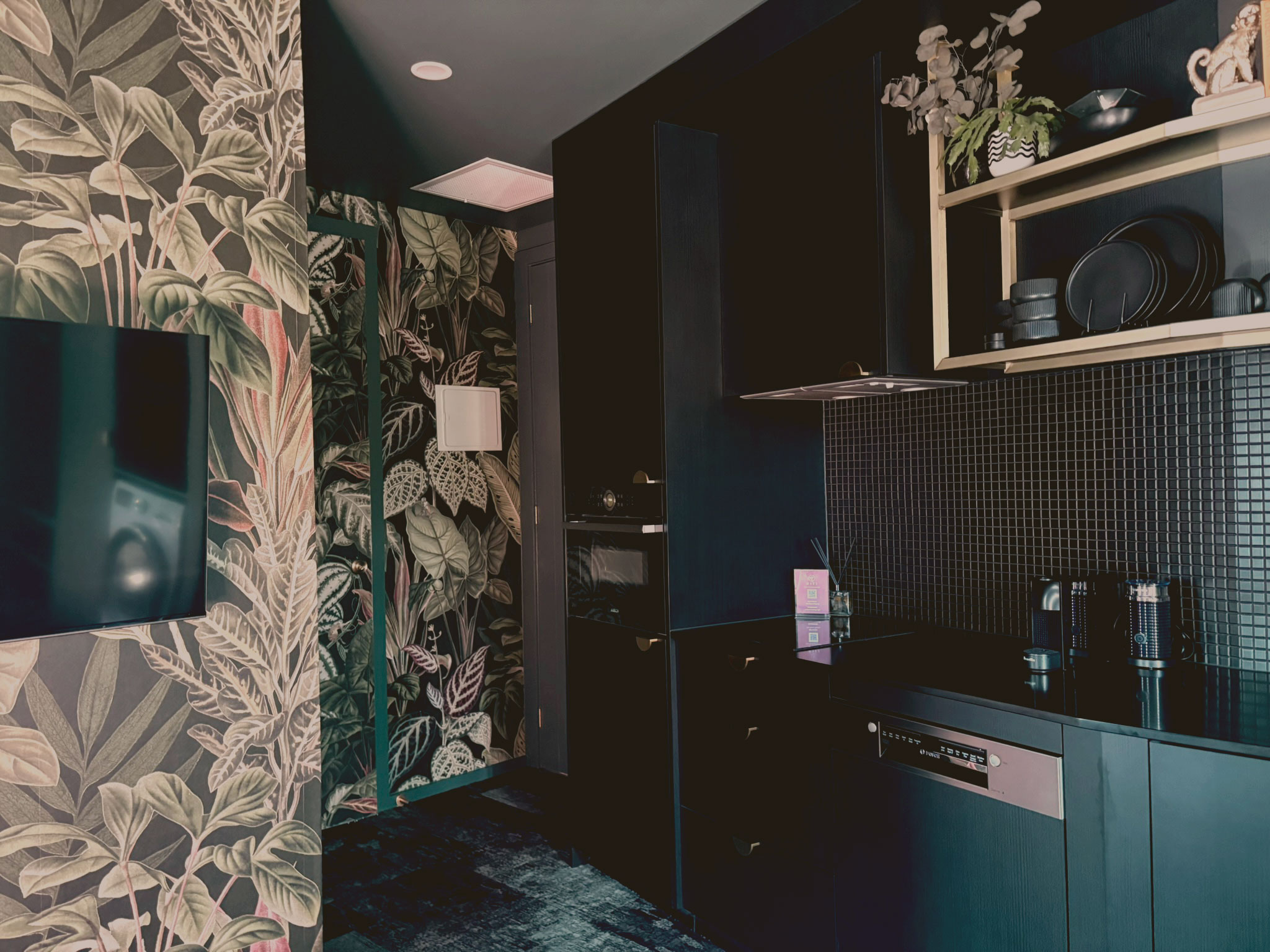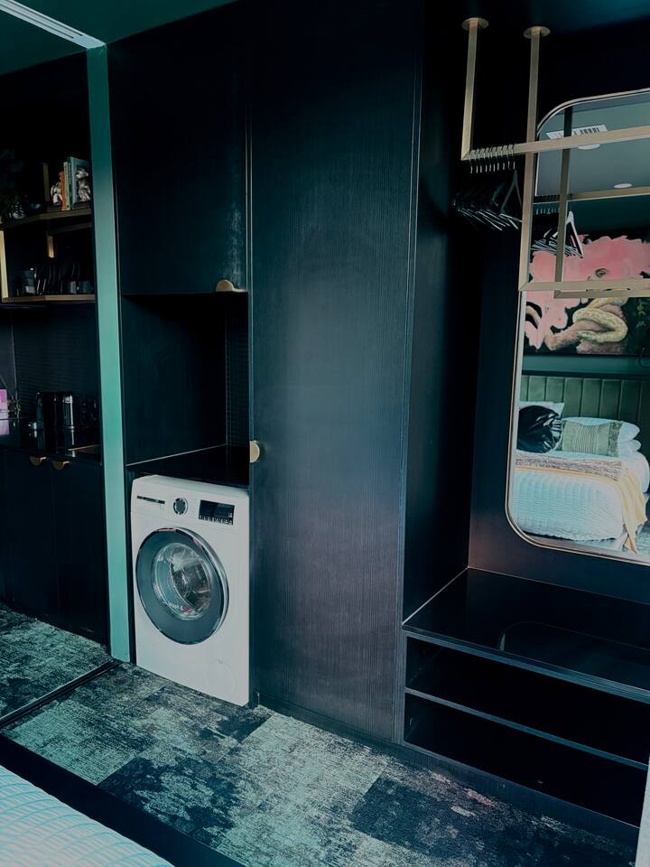 First-floor designer micro-apartment in Canberra's coolest little trio. WHY IT’S SPECIAL • Jungle-themed wallpaper + green paint = major mood • Four fluted glass panels to separate or open living/sleeping zones • Boutique hotel feel with all the liveable extras SLEEPING SETUP • 1 x queen bed with velvet headboard, storage drawers + open shelving • 1 x King Living sofabed — extends to a king single at the touch of a button. Linen/towels provided only for booked 3rd guest or $50 extra on request • Large windows with block-out blinds and sheer curtains LIVING COMFORTS • Textured rust King Living sofa — plush and adjustable • 43" Smart TV + streaming-ready • Ducted air con for year-round comfort • Height-adjustable laptop table — sit or stand workspace KITCHEN & DINING • Induction cooktop + combi steam oven (bake + reheat) • Full-size dishwasher + half fridge (note: no freezer) • Nespresso machine with pods • Cookware, utensils + serveware for proper meals • Pantry staples: olive oil, vinegar, salt, pepper, tea, coffee, sugar • Sofa-side tables for easy in-room dining BATHROOM • Freestanding pedestal basin + brass tapware • Window with block-out blind for light/privacy control • Monsoon + handheld shower heads • Thankyou body wash, body lotion, Monday shampoo + conditioner LAUNDRY & STORAGE • Bosch washer-dryer combo • Brass hanging rails, full-length mirror, built-in suitcase bench • Safe for valuables • Clothes hangers + entry coat stand • Steam iron and laundry essentials GETTING AROUND • Free on-street parking (cul-de-sac + adjacent road) • 2 tram stops within 350m • Scooters for hire are always nearby • 10–15 min walk to Lonsdale Street The other two in the trio: Second floor – Lagoon: airbnb.com.au/h/lagoonbraddon Third floor – Hive: airbnb.com.au/h/hivebraddon FOLLOW US: 📸 @greenroomsbraddon